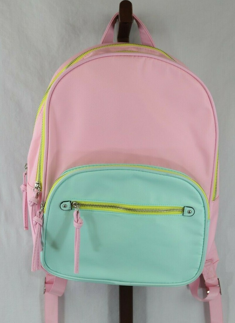 Girls Pink Multi Color Double Compartment Padded Backpack Bag Ebay